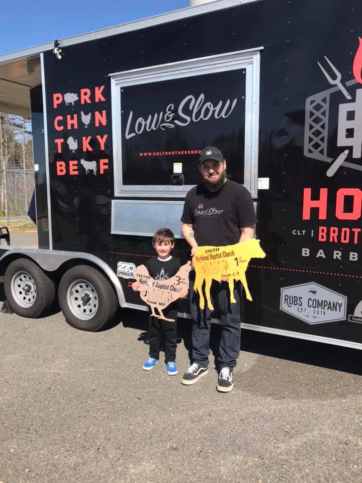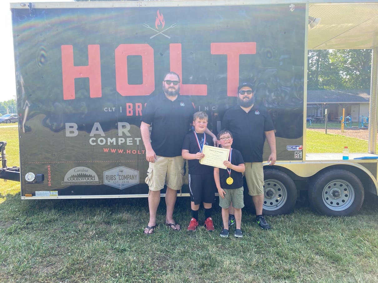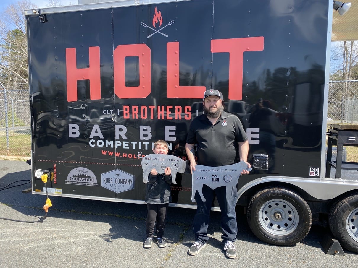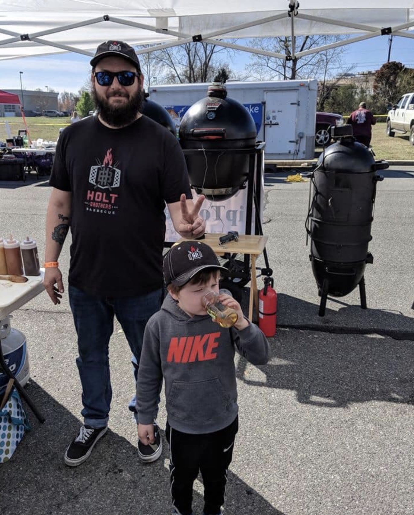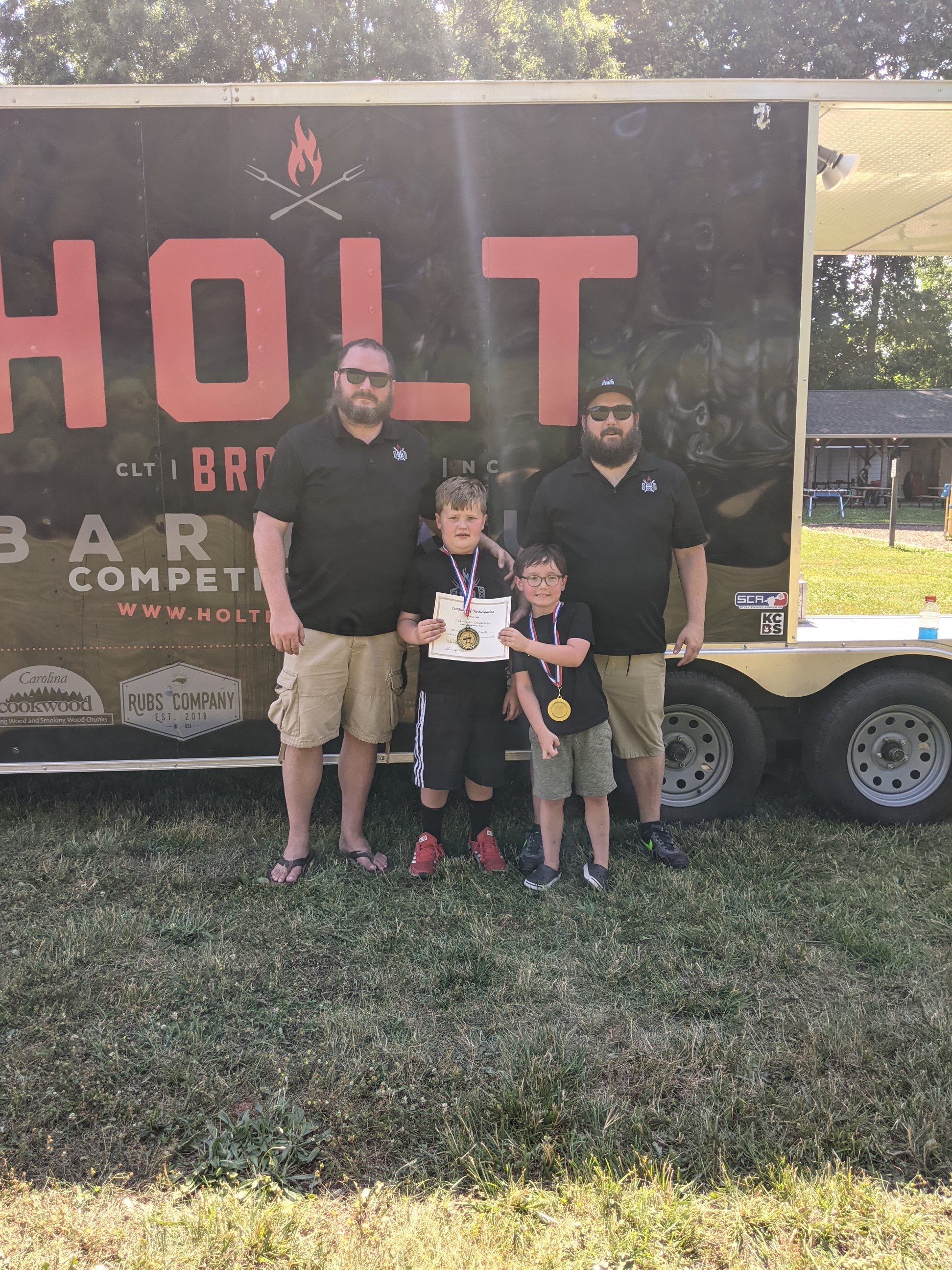 Holt Brothers BBQ is a competition BBQ team consisting of Justin and Patrick Holt, located in the Charlotte area in the Piedmont of North Carolina. We were raised on years of learning the art of slow and low pit cooked pork shoulders over naturally cured pecan and hickory from our late father, who tended pits and made a top secret sauce (still protected to this day), during quarterly fundraisers for the volunteer fire department he was a long time member of in Badin, NC. The members took tremendous pride in their art, and the smell of the pecan/hickory smoke blended with the cold fall or warm summer nighttime air still takes both of us back to those wonderful weekends. We both cherish and revere those skills our late father instilled and passed down to us and are taking that passion to the competition circuit to honor his memory, and show the big boys these Carolina brothers are here to win!